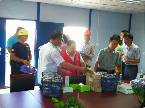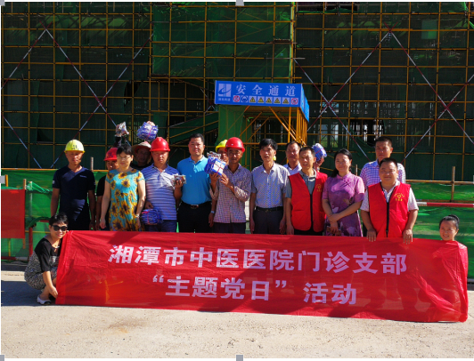 7月19日,120急救中心康軍民主任、市中醫(yī)醫(yī)院謝宏贊院長(zhǎng)、曹慎副院長(zhǎng)帶領(lǐng)中醫(yī)醫(yī)院門(mén)診支部黨員志愿者來(lái)到湘潭市公共衛(wèi)生服務(wù)中心的建設(shè)工地,向在酷暑下依然堅(jiān)守在工作崗位上的建設(shè)者進(jìn)行慰問(wèn),康軍民主任、謝宏贊院長(zhǎng)分別代表120急救中心、市中醫(yī)醫(yī)院向他們贈(zèng)送精心準(zhǔn)備的自制涼茶、藿香正氣液、風(fēng)油精、毛巾等防暑降溫物品,對(duì)全體建設(shè)者的辛苦工作表示慰問(wèn),對(duì)他們?yōu)橄嫣妒械男l(wèi)生事業(yè)作出的貢獻(xiàn)表示感謝。建設(shè)者代表高興的接受慰問(wèn)物資,對(duì)120急救中心、市中醫(yī)醫(yī)院的慰問(wèn)表示了衷心的感謝。并表示一定會(huì)優(yōu)質(zhì)、高效建好公衛(wèi)大樓,為湘潭市衛(wèi)生發(fā)展做出貢獻(xiàn)。
