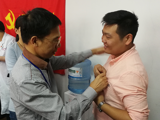院黨委副書記、院長謝宏贊同志為黨員佩戴黨徽