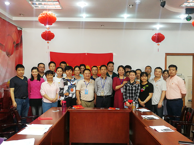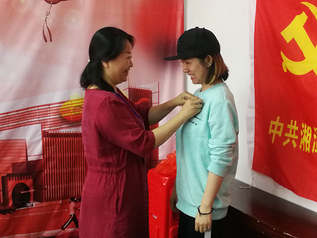 支部書記王興同志為院黨委副書記、院長謝宏贊同志佩戴黨徽