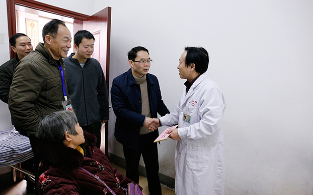 在醫(yī)院四樓黨員活動室,趙文著一行首先看望慰問了我院困難黨員,為他們送上慰問金并同他們親切交談,詳細了解他們的健康情況、家庭生活狀況,詢問工作生活中遇到的問題,并向他們致以新春的祝福。