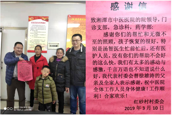 3月14日下午,小孩的奶奶送來了由紅砂村村委會起稿書寫的感謝信。“他年前就下地活動了,恢復得很好,本來早就要來表示感謝的,一直下雨,山?jīng)_里出來不方便”,小孩的奶奶說道。這既是對我們醫(yī)院仁人志士的大愛無疆的高度肯定,也是對我院中醫(yī)骨傷科特色傳統(tǒng)治療的贊譽。