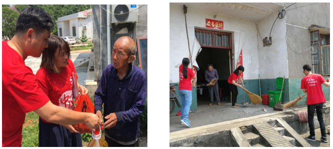 (圖為端午節(jié)來臨之即,幫扶責(zé)任人為貧困戶送上了節(jié)前慰問物資,并為他們收拾院落、打掃衛(wèi)生)