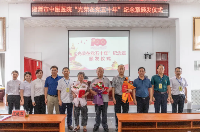 一百年征程浩蕩,五十載初心如磐。為表達對老黨員同志的崇敬之情,6月29日下午,湘潭市中醫(yī)醫(yī)院在五樓會議室隆重舉行“光榮在黨五十年”紀念章頒發(fā)儀式。市衛(wèi)健委黨委委員、副主任趙新平,市衛(wèi)健委科教科科長王曉平,醫(yī)院黨委領導班子成員,全體在職黨員,離退休黨員代表共120余人同聚一堂,共同見證了這個光榮的時刻。醫(yī)院黨委副書記、院長謝宏贊主持會議并致辭。