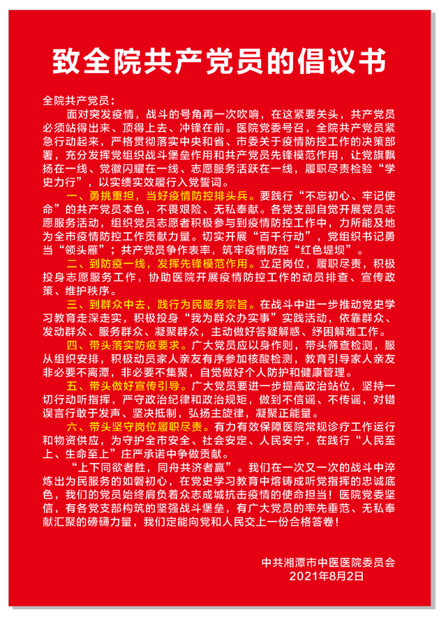 致全院共產(chǎn)黨員的倡議書