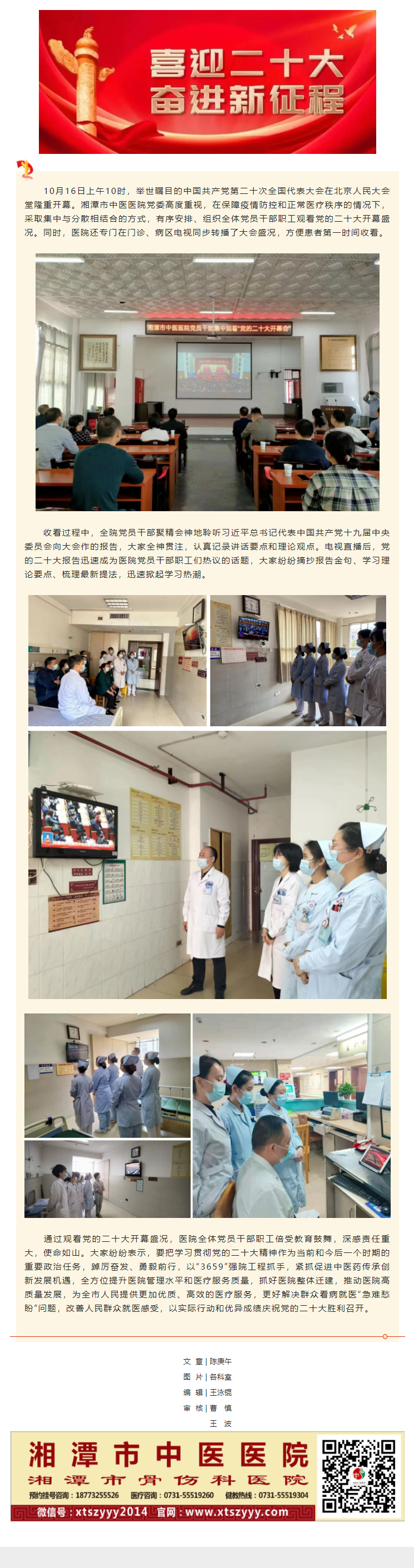 湘潭市中醫(yī)醫(yī)院組織黨員干部職工收看黨的二十大開幕會(huì)