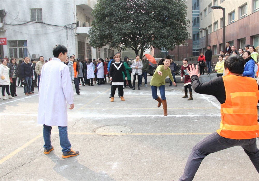一點整,隨著工會主席萬嵐“預祝大家節(jié)日快樂”的開場白,十多名醫(yī)院工會干部組成的裁判、計時、維持秩序等工作人員分兩個場地,拉開了保護國王游藝活動序幕?,F場場上隊員奔跑跳躍奮力猛擊,靈巧躲閃避開鋒芒,采取各種戰(zhàn)術攻擊對手。拉拉隊員興致勃勃觀戰(zhàn)吶喊,為獲勝者歡呼?,F場趣味橫生,笑聲蕩漾,處處洋溢著歡樂祥和的節(jié)日氣氛。