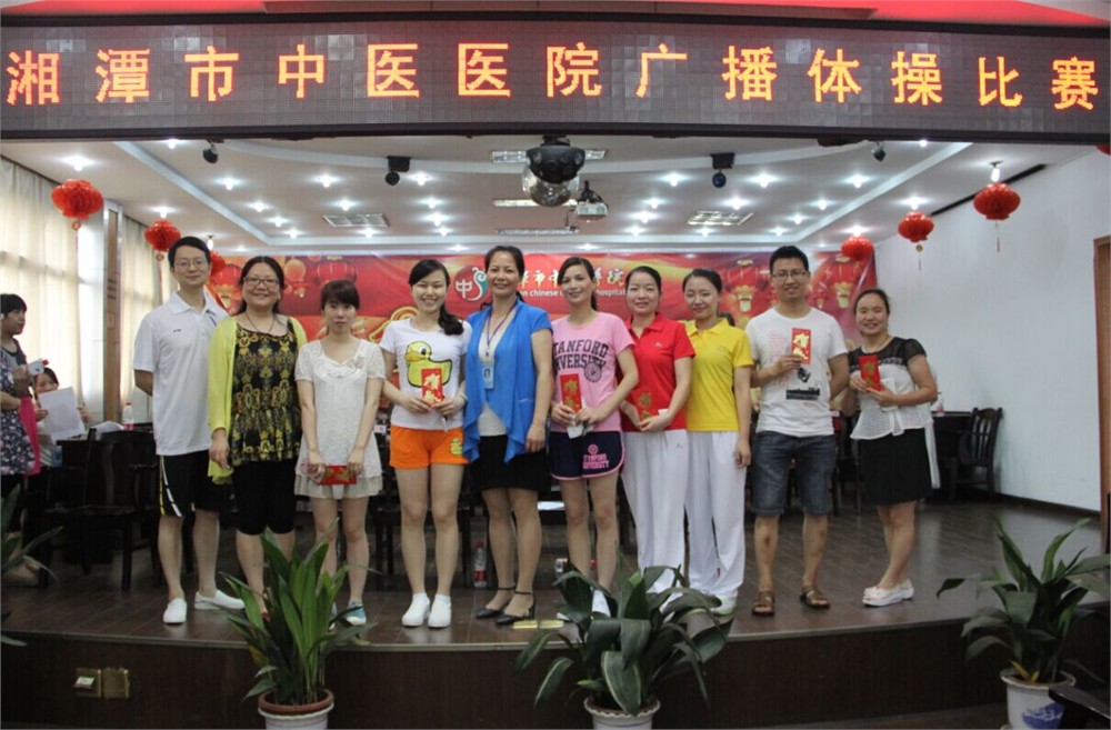 為豐富職工業(yè)余生活,提高職工的身體素質(zhì),增強(qiáng)團(tuán)隊和集體的凝聚力,展現(xiàn)中醫(yī)人精神風(fēng)貌,5月29日下午,湘潭市中醫(yī)醫(yī)院舉行了“我運動 我健康 我快樂”為主題的第九套廣播體操比賽。