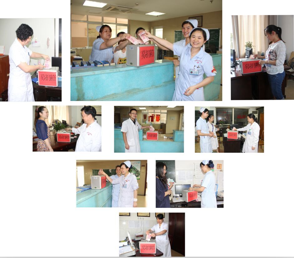 醫(yī)院院長(zhǎng)、黨委副書記謝宏贊,黨委書記賀山虎,工會(huì)主席萬(wàn)嵐,醫(yī)院黨政班子成員、黨員、干部和廣大職工,以工會(huì)小組為單元自發(fā)地募捐。一病室、二病室……門診、急診……藥劑科、放射、檢驗(yàn)……手術(shù)室、供應(yīng)室……財(cái)務(wù)、行政辦公室……,10元、20元……100元、200元、300元……,一張張錢幣投入了捐款箱,一個(gè)個(gè)裝滿愛(ài)心的“紅包”投進(jìn)了捐款箱,愛(ài)心在這里匯集,愛(ài)心在這里傳遞……