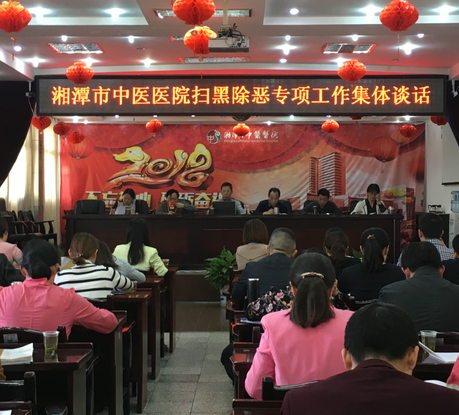為進(jìn)一步落實(shí)中央、省、市有關(guān)會議和文件精神,推進(jìn)衛(wèi)計(jì)系統(tǒng)掃黑險(xiǎn)惡專項(xiàng)斗爭工作,10月31日下午,湘潭市中醫(yī)醫(yī)院召開了掃黑險(xiǎn)惡專項(xiàng)工作集體談話工作會議。院班子成員、紀(jì)檢干部及中層干部近70人參加會議。