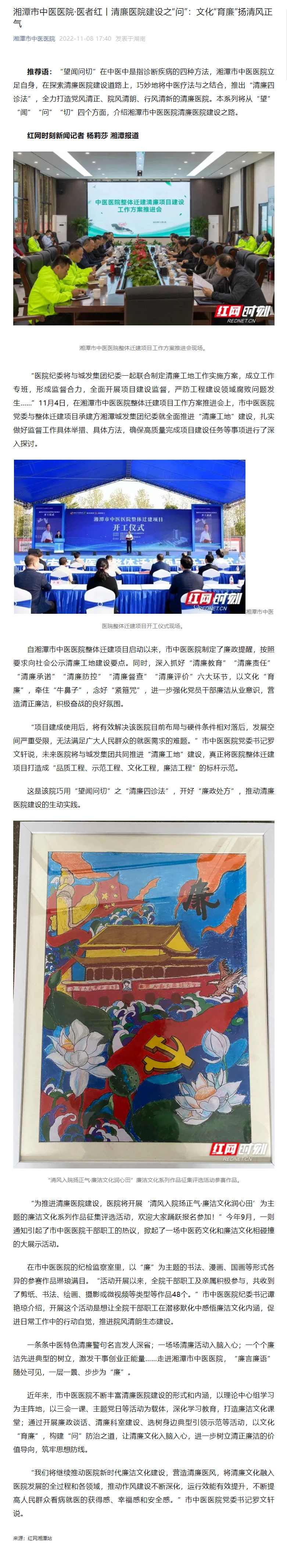 湘潭市中醫(yī)醫(yī)院·醫(yī)者紅丨清廉醫(yī)院建設(shè)之“問”:文化“育廉”揚(yáng)清風(fēng)正氣