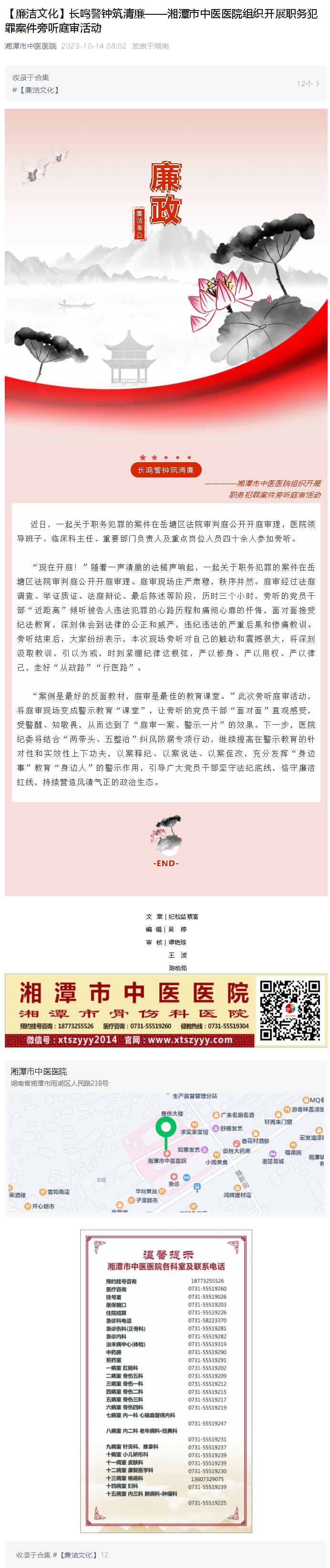 【廉潔文化】長(zhǎng)鳴警鐘筑清廉——湘潭市中醫(yī)醫(yī)院組織開(kāi)展職務(wù)犯罪案件旁聽(tīng)庭審活動(dòng)