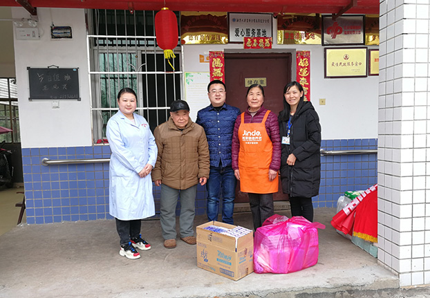 醫(yī)院團(tuán)委工作人員向長城鄉(xiāng)敬老院贈送物資