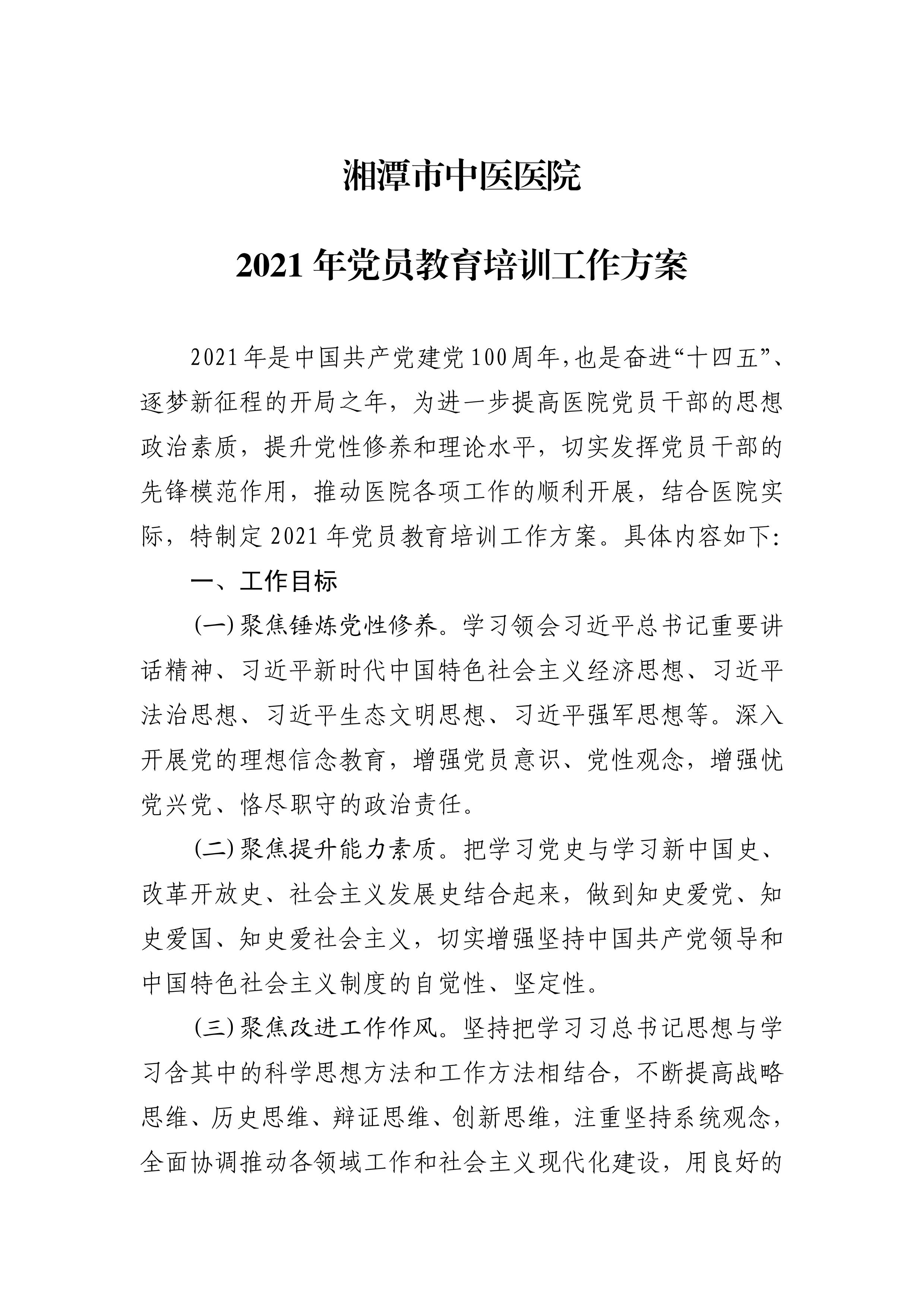 湘潭市中醫(yī)醫(yī)院2021年黨員教育培訓(xùn)工作方案