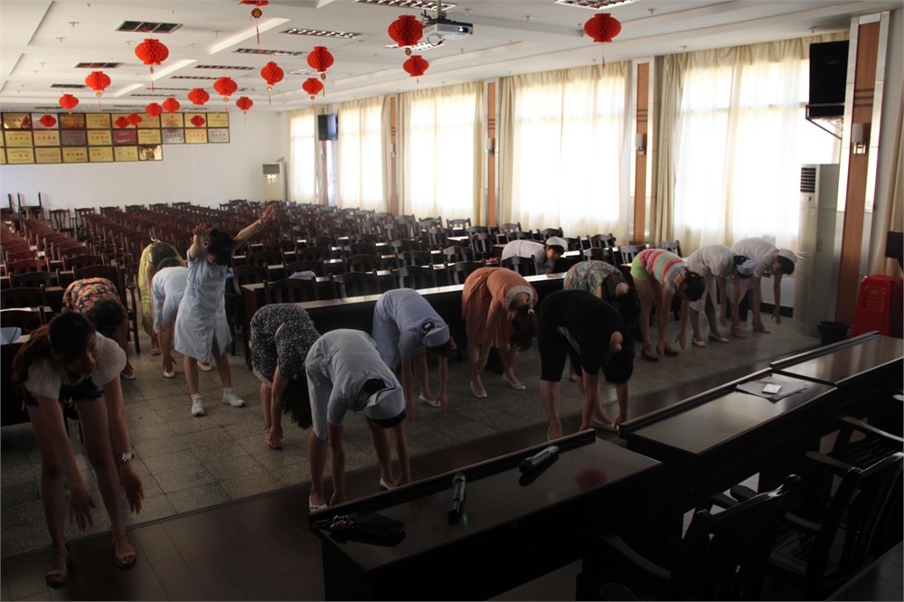 2013年7月3日16:15我院護(hù)理部召集各護(hù)理單元護(hù)士長(zhǎng)及教育組長(zhǎng)在五樓會(huì)議室培訓(xùn)八段錦。