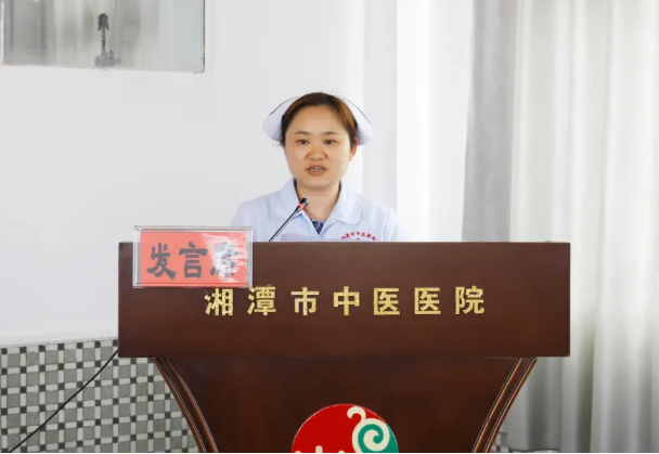 接著,優(yōu)秀護(hù)士代表劉純發(fā)言。她來自五病室(骨傷三科),作為一名有著豐富臨床護(hù)理經(jīng)驗的責(zé)護(hù)組長,她每天穿梭于病房,詳細(xì)了解所有病人的身心狀況,針對病人的特點做出相應(yīng)的疾病和藥物健康知識宣教,通過一次次的查房以及和病人、家屬、主管醫(yī)生的溝通,她收獲了患者的信任和好評。她說:“我覺得作為一名優(yōu)秀的護(hù)士不僅僅是打針、發(fā)藥、鋪床,更應(yīng)該是傳播健康的使者。”在平凡的崗位上敬業(yè),奉獻(xiàn)著青春和年華,在平淡的生活中磨礪,迎來無數(shù)微笑與感謝,向劉純護(hù)士致敬。