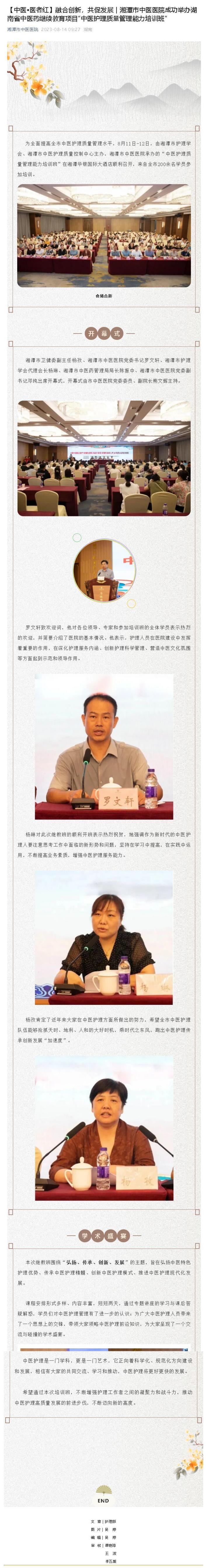 【中醫(yī)?醫(yī)者紅】融合創(chuàng)新,共促發(fā)展 | 湘潭市中醫(yī)醫(yī)院成功舉辦湖南省中醫(yī)藥繼續(xù)教育項目“中醫(yī)護理質(zhì)量管理能力培訓班”