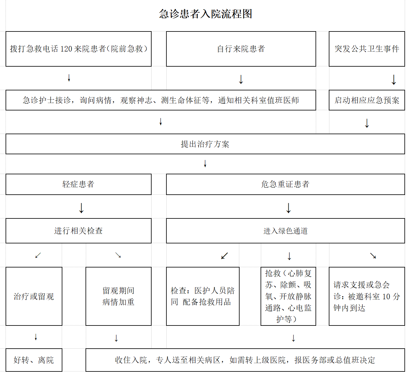 一、為保證急診患者優(yōu)先住院工作及時、準(zhǔn)確、有效地進行,急診科開設(shè)并實施綠色生命安全通道,即“急救綠色通道”,對急診患者實行“三先一后”原則,即先搶救、先治療、先檢查,后補辦手續(xù)。