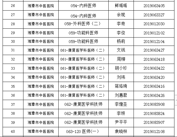 附件1:2019年湘潭市中醫(yī)醫(yī)院公開招聘專業(yè)技術(shù)人員資格審查人員名單