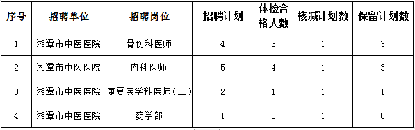 2019年湘潭市中醫(yī)醫(yī)院公開招聘專業(yè)技術(shù)人員體檢后核減招聘崗位及考察公告