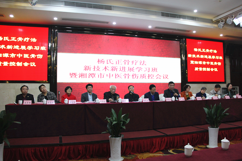 岐黃傳薪火,同道聚蓮城。11月6日,由湘潭市中醫(yī)藥管理局和湘潭市中醫(yī)醫(yī)院共同舉辦的楊氏正骨療法新技術新進展學習班暨湘潭市中醫(yī)骨傷質量控制年會,在湘潭華銀國際大酒店舉行,來自山東、海南等地中醫(yī)骨傷科領域的專家學者以及全省各地州市和市內(nèi)中醫(yī)骨傷科同道共260余人與會。省中醫(yī)藥管理局科教處處長楊文洲、市衛(wèi)計委副主任陳建安、市中醫(yī)藥管理局局長周菲菲出席了開幕式。