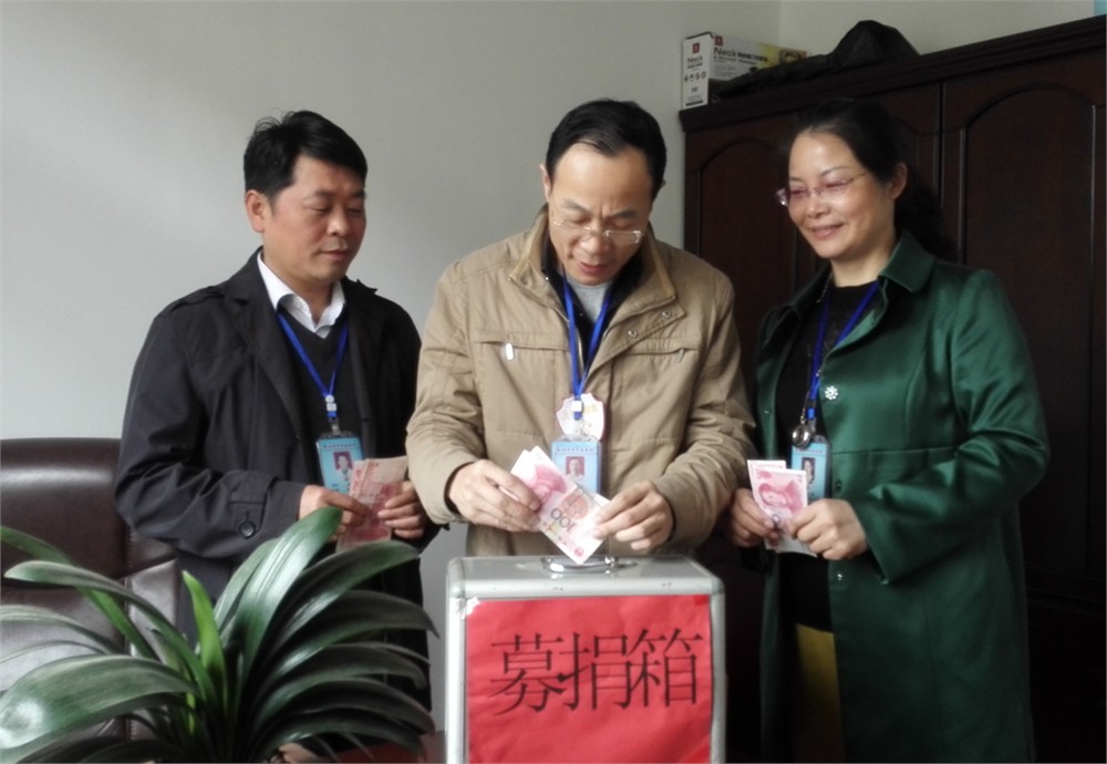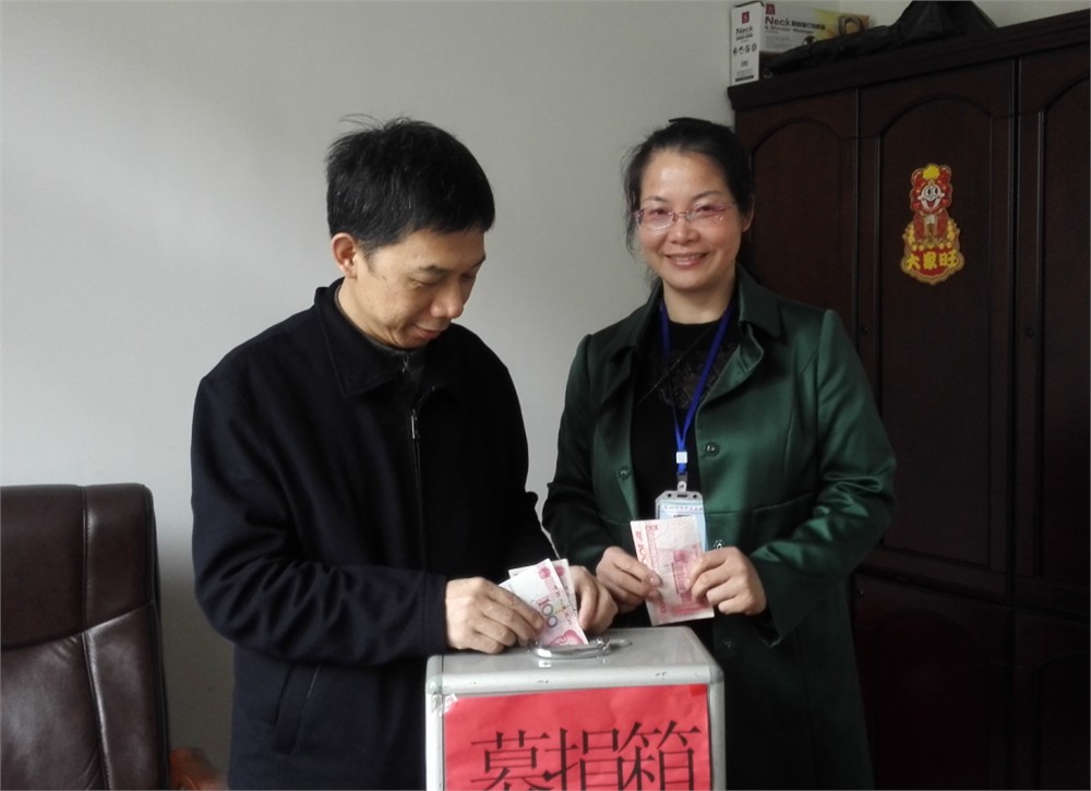 機(jī)關(guān)、財(cái)務(wù)總務(wù)工會(huì)小組率先將首筆募捐款3175元,交至募捐箱。