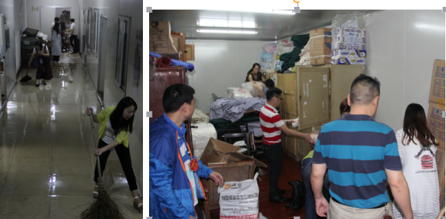 2、院內(nèi)組織行政后勤人員在地下庫房進(jìn)行排水,物資轉(zhuǎn)移等工作
