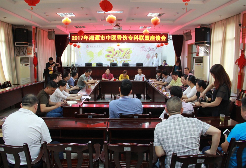 2017年6月28日上午,湘潭市中醫(yī)骨傷??坡?lián)盟交流座談會在湘潭市中醫(yī)醫(yī)院成功召開,湘潭市中醫(yī)藥管理局周菲菲局長、湘潭市中醫(yī)醫(yī)院謝宏贊院長等領(lǐng)導出席了會議并講話。來自湘潭地區(qū)各市、縣、區(qū)級中醫(yī)醫(yī)院,鄉(xiāng)鎮(zhèn)衛(wèi)生院及社區(qū)衛(wèi)生服務(wù)中心等近20家骨傷??坡?lián)盟單位代表參加了會議。