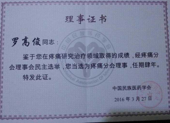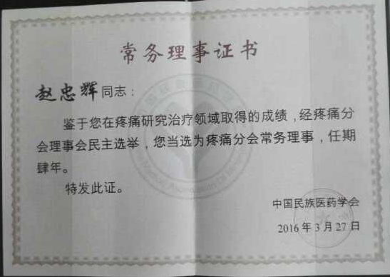 熱烈祝賀我院業(yè)務(wù)院長趙忠輝當(dāng)選中國民族醫(yī)藥學(xué)會疼痛分會常務(wù)理事、康復(fù)醫(yī)學(xué)科副主任羅高俊當(dāng)選理事