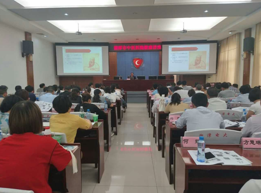 2017年5月11日下午,湘潭廣播電視大學的會議室內(nèi),人頭攢動,由湘潭市教育局、市衛(wèi)計委主辦的“2017年湘潭市學校衛(wèi)生工作培訓”在這里如期舉行,湘潭市所有中小學校、幼兒園的領導和校醫(yī)二百余人齊聚在此,認真學習培訓。湘潭市中醫(yī)醫(yī)院喻偉強主任應邀在培訓班授課。他講的題目是《傳統(tǒng)中醫(yī)進校園》,通過通俗易懂的語言,對傳統(tǒng)中醫(yī)藥進行了一次生動的科普宣傳,獲得了培訓班學員雷鳴般的掌聲,贏得了主辦方的高度贊賞,生動的傳播中醫(yī)藥文化。