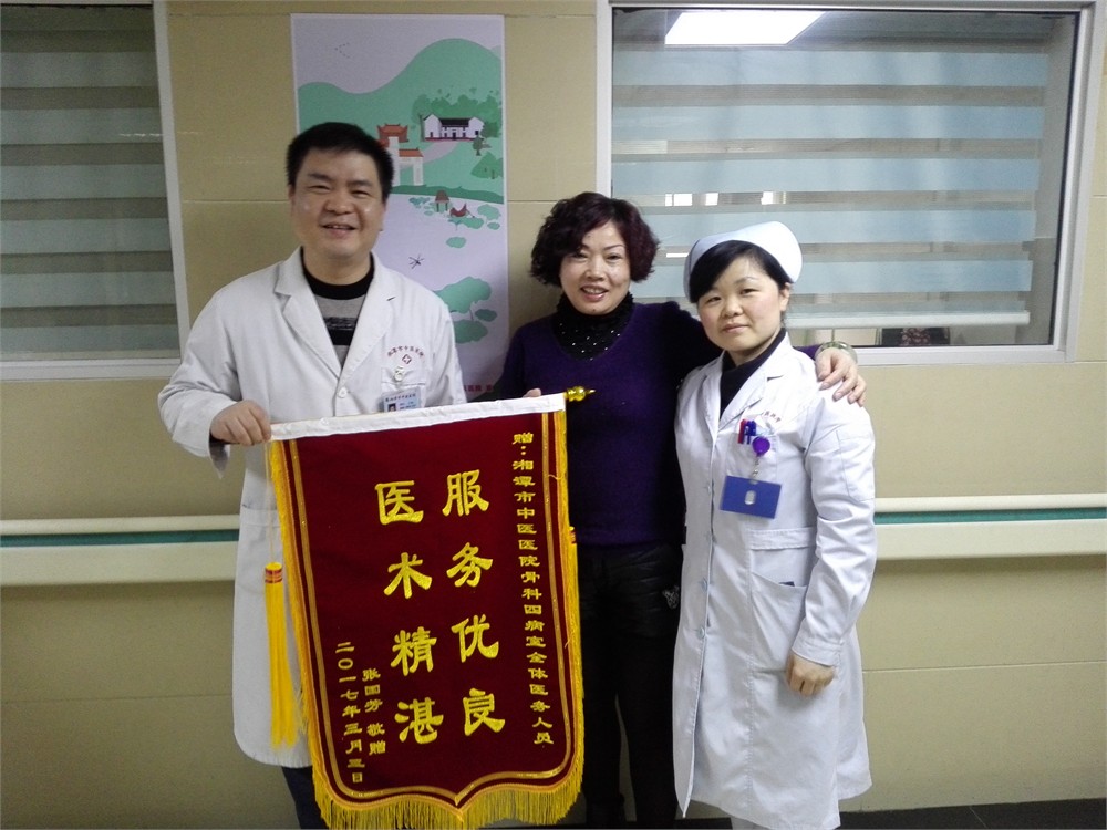 “沒想到傷得這么重卻能恢復得這么快!終于可以回家了,太感謝你們了!”隨著滿懷感激的話語,一面鮮艷的錦旗送到了湘潭市中醫(yī)醫(yī)院四病室醫(yī)護辦公室。
