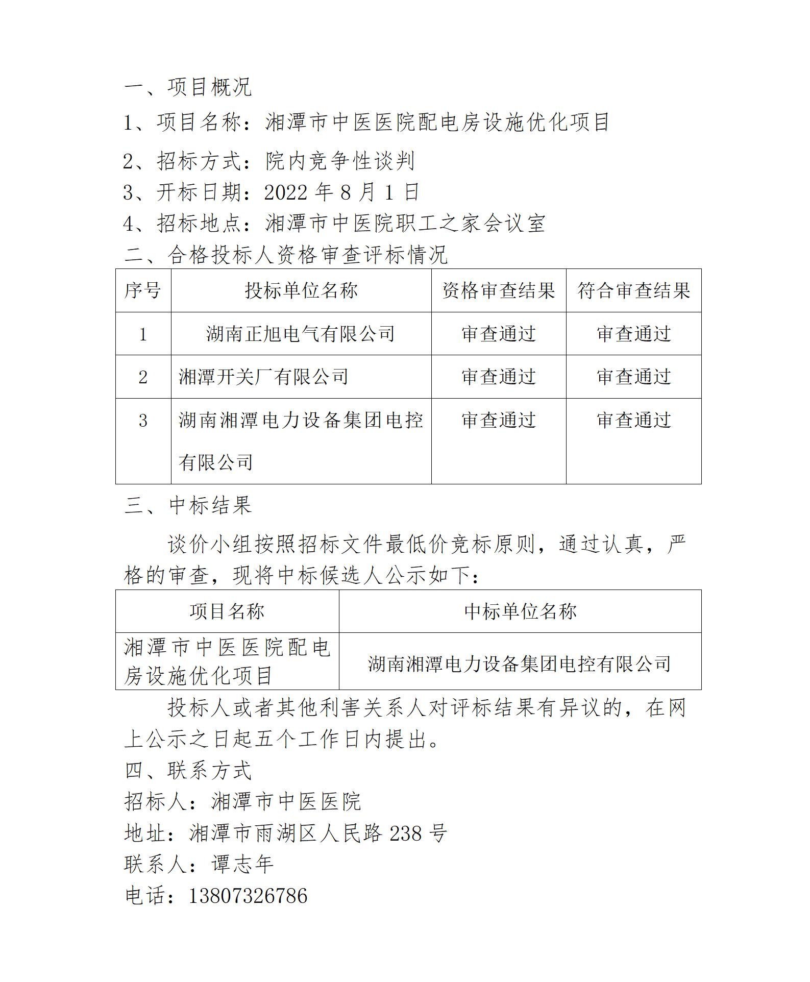 湘潭市中醫(yī)醫(yī)院配電房設(shè)施優(yōu)化項(xiàng)目 結(jié)果公示