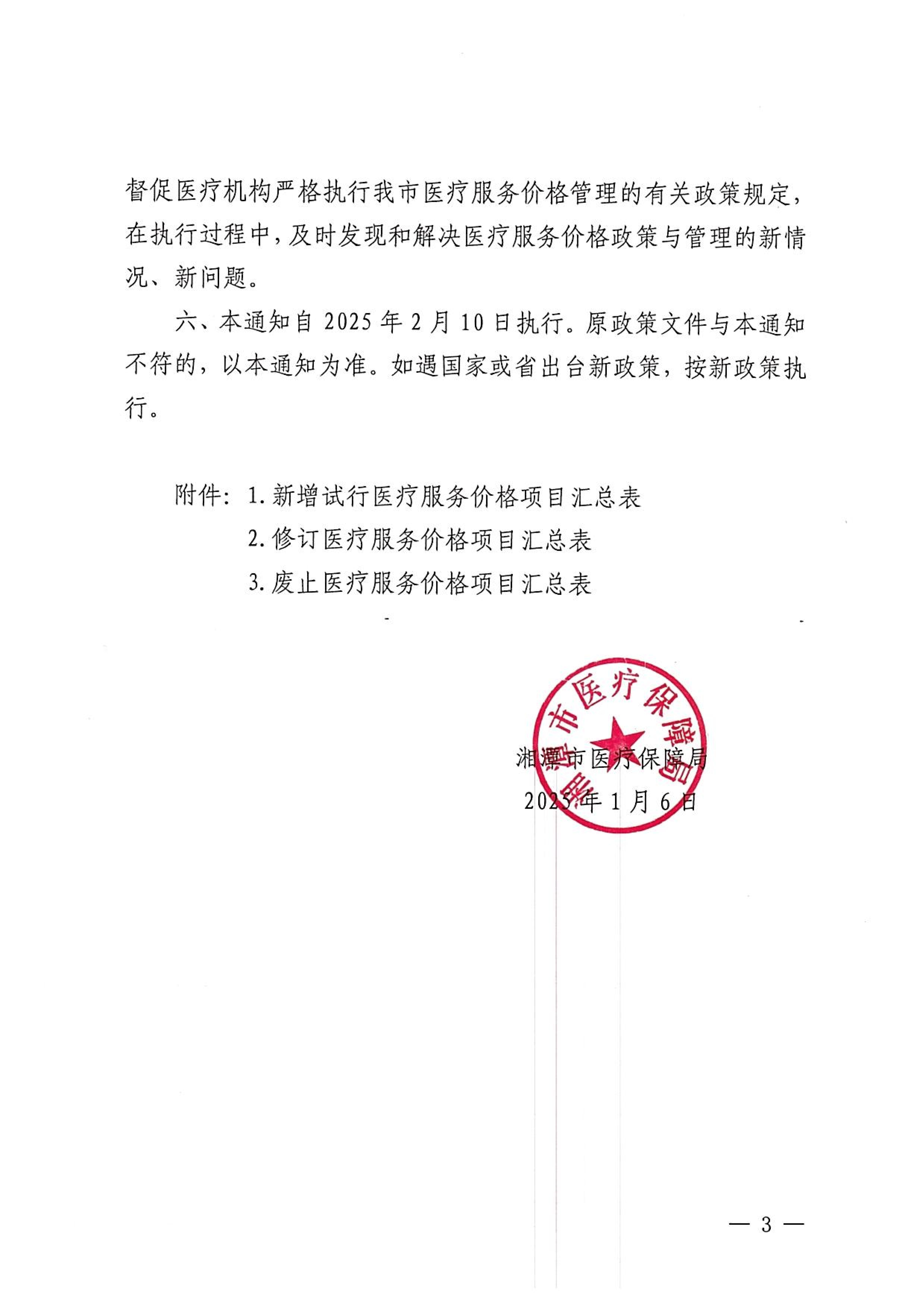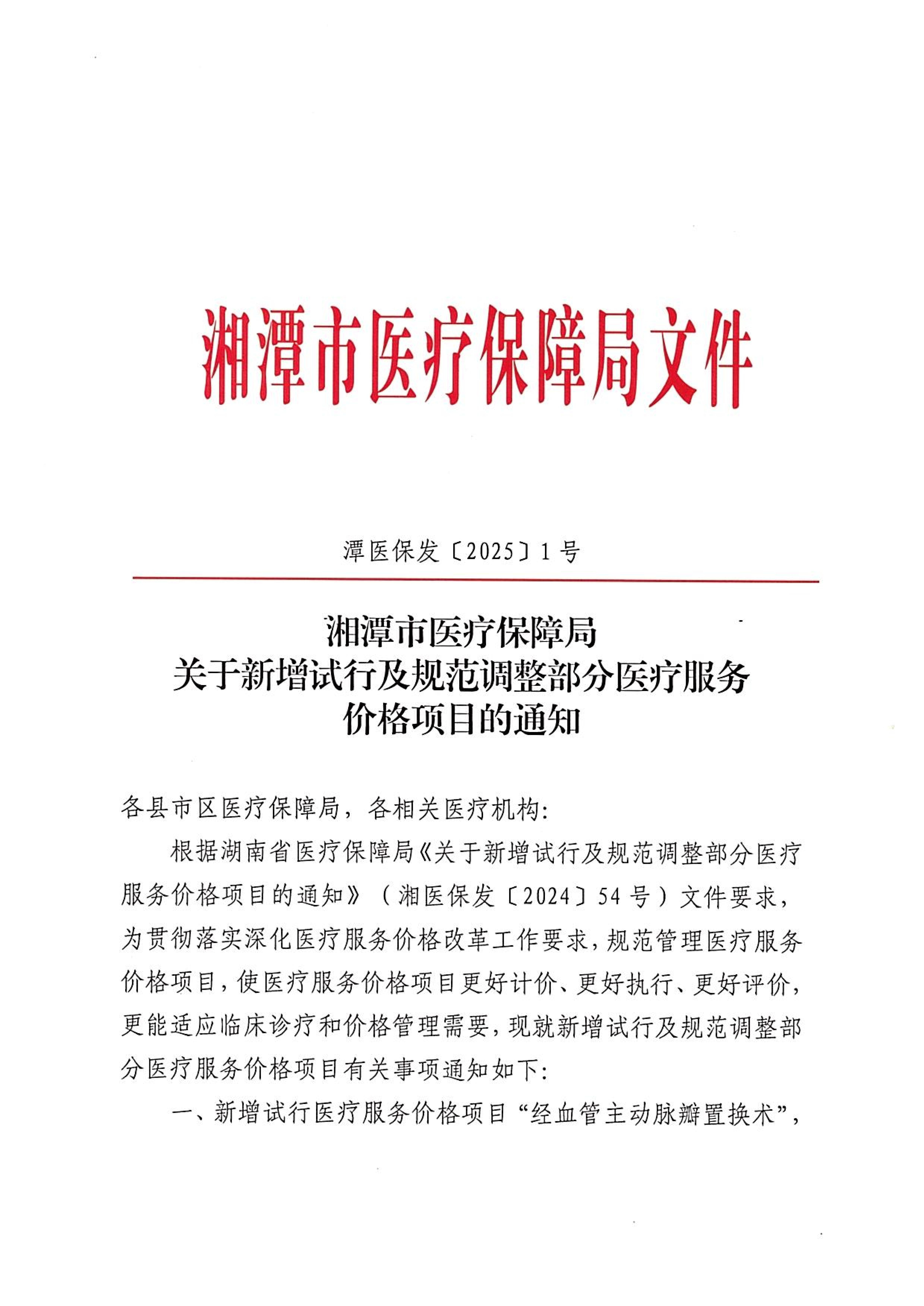 潭醫(yī)保發(fā)〔2025〕1號-湘潭市醫(yī)療保障局關于新增試行及規(guī)范調整部分醫(yī)療服務價格項目的通知