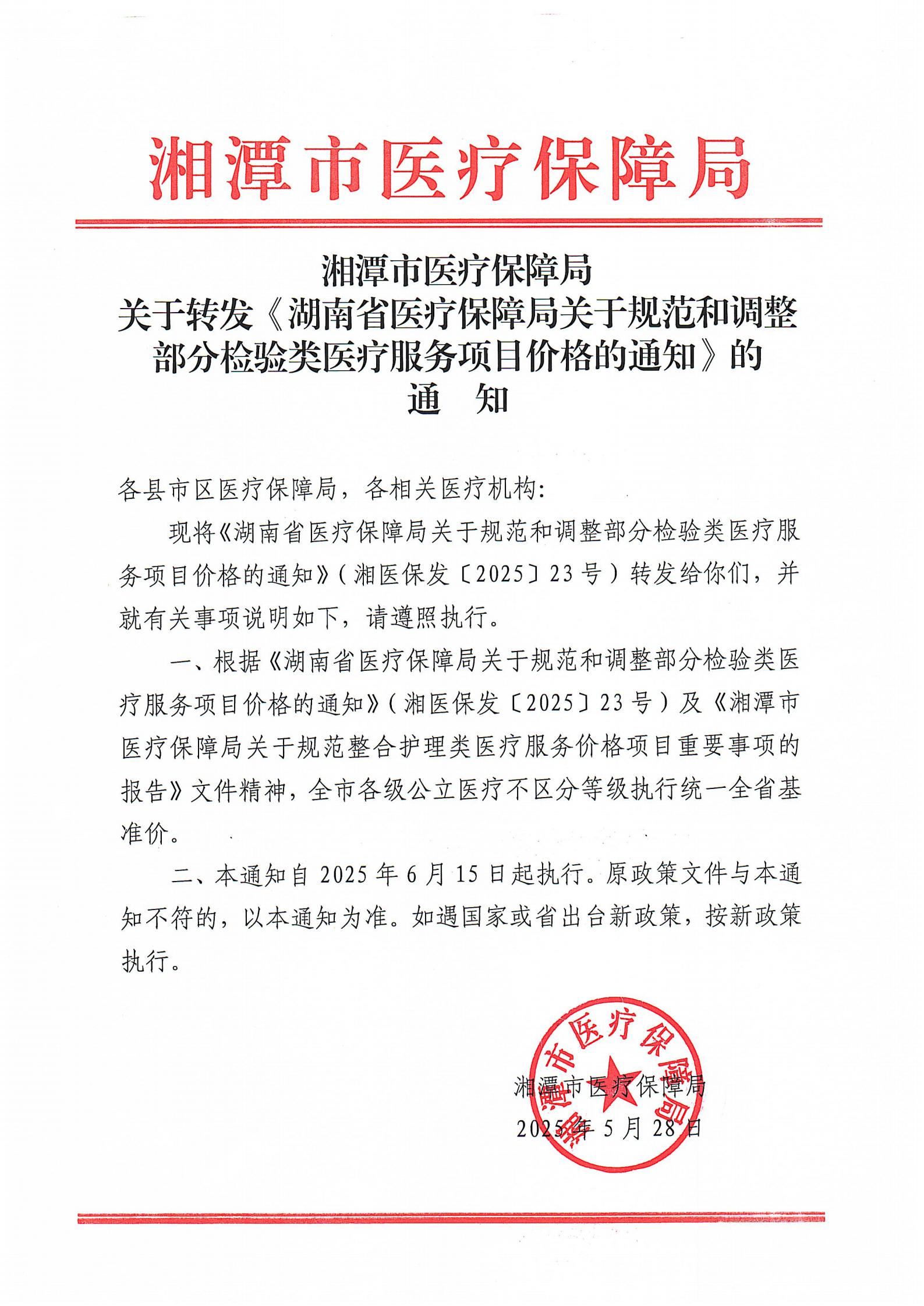 關(guān)于轉(zhuǎn)發(fā)《湖南省醫(yī)療保障局關(guān)于規(guī)范和調(diào)整部分檢驗類醫(yī)療服務(wù)項目價格的通知》的通知