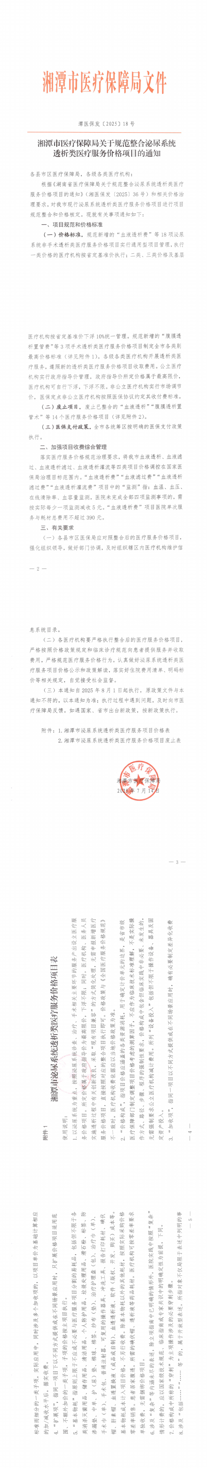 湘潭市醫(yī)療保障局關(guān)于規(guī)范整合泌尿系統(tǒng)透析類醫(yī)療服務(wù)價格項目的通知