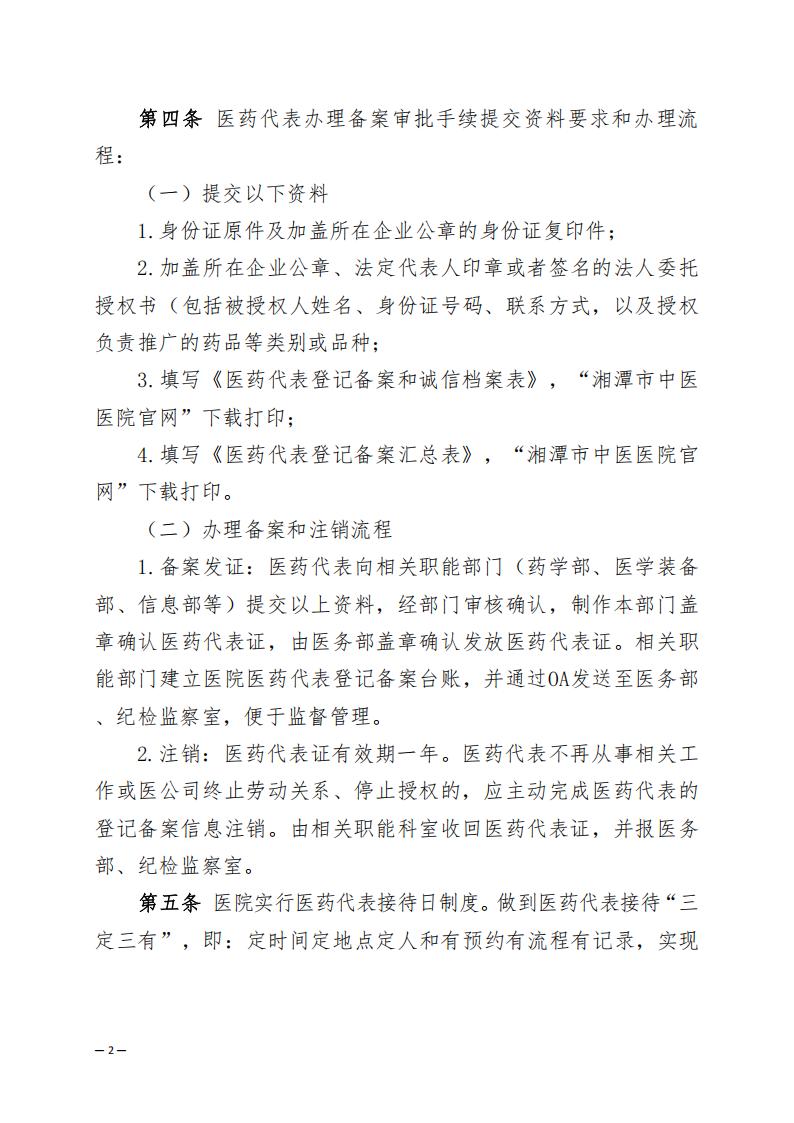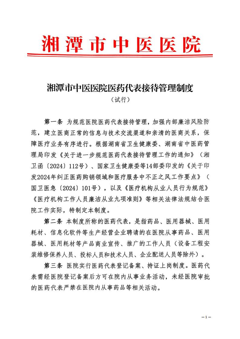 湘潭市中醫(yī)醫(yī)院醫(yī)藥代表接待管理制度(試行)