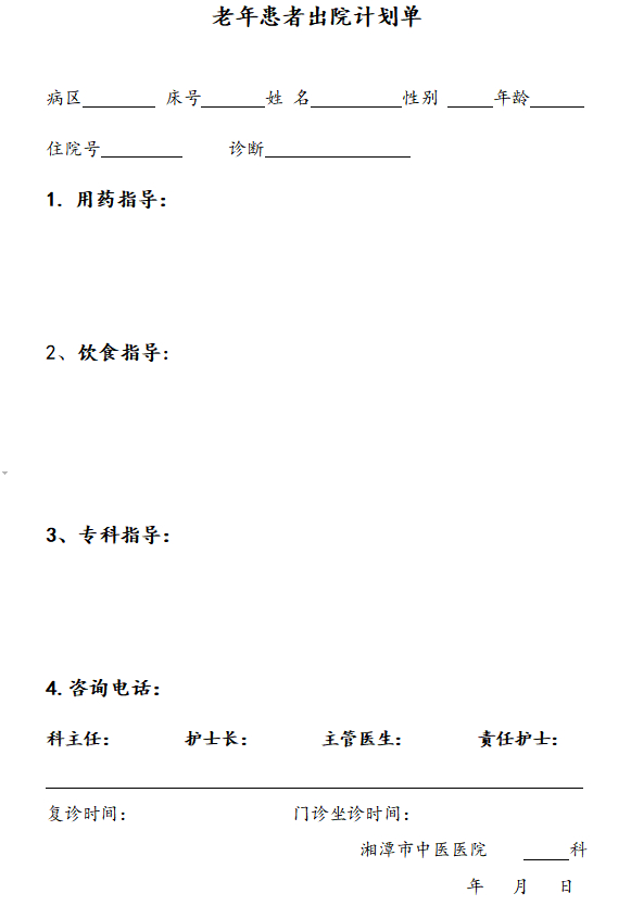 【診療服務(wù)】湘潭市中醫(yī)醫(yī)院老年患者出院計(jì)劃單