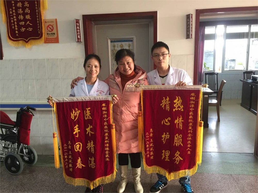 冬至來(lái)臨,寒潮接踵而至,而這并不影響王女士對(duì)康復(fù)醫(yī)學(xué)科滿腔的感激之情。這天下午,王女士滿帶笑意、步宇昂健的為湘潭市中醫(yī)醫(yī)院康復(fù)醫(yī)學(xué)科送來(lái)了兩面錦旗,一面是“熱情服務(wù)、精心護(hù)理”的錦旗,是為了感謝全體康復(fù)醫(yī)學(xué)科的醫(yī)務(wù)工作者在她治療期間對(duì)她的關(guān)懷和幫助;另一面是“醫(yī)術(shù)精湛、妙手回春”的錦旗,是為了突出她對(duì)自己主管治療師譚德全醫(yī)師的感激之情,特地為她贈(zèng)送了這另一面帶著暖暖醫(yī)患情結(jié)的錦旗,給我們?nèi)w醫(yī)務(wù)人員和現(xiàn)場(chǎng)的病友們一次滿滿正能量的詮釋。湘潭市中醫(yī)醫(yī)院康復(fù)醫(yī)學(xué)科的全體醫(yī)務(wù)人員將從自身出發(fā),更加提升自我的職業(yè)素養(yǎng),為患者身心健康提供更全面更優(yōu)質(zhì)的服務(wù)。