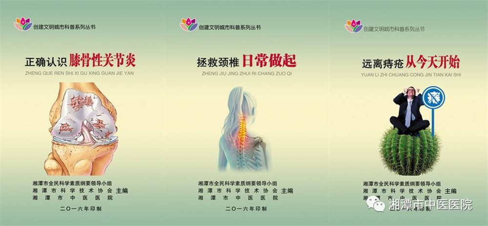 湘潭市中醫(yī)醫(yī)院聯(lián)合湘潭市科學(xué)技術(shù)協(xié)會(huì)編寫了創(chuàng)建文明城市科普系列叢書,康復(fù)醫(yī)學(xué)科參與編寫了“正確認(rèn)識(shí)膝骨性關(guān)節(jié)炎”,向廣大群眾介紹了如何正確的保護(hù)好自己的膝關(guān)節(jié)。