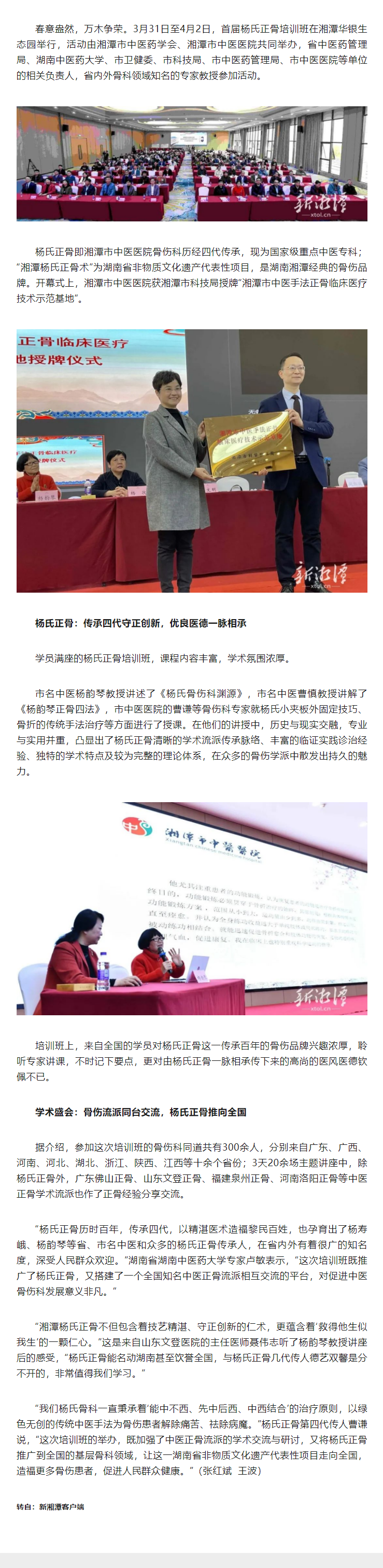 【中醫(yī)藥文化】首屆“楊氏正骨”培訓班在湘潭舉行 300多名專家共商正骨療法